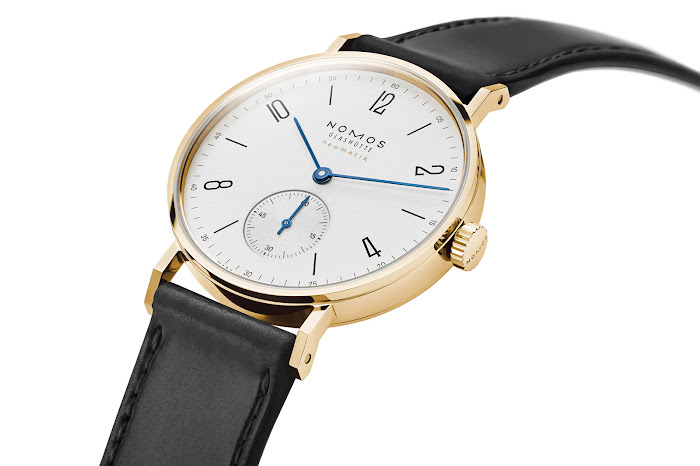 The new Nomos Glashütte Tangente gold neomatik models have a suggested retail price of €9,800.