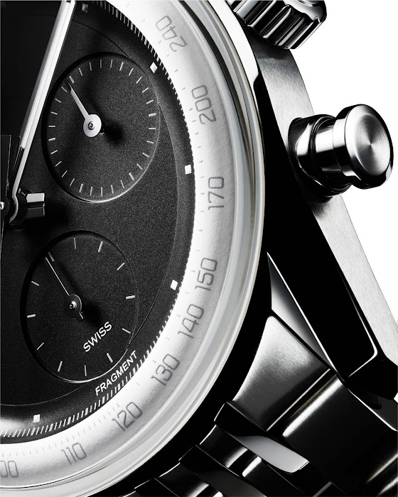 The new model offers a striking black-and-white contrast, a signature reinterpretation of Hiroshi Fujiwara’s design vision through the glassbox construction. His signature design codes, including the fragment lightning bolt, are subtly integrated into the dial, lending a distinctive personality to the timepiece.